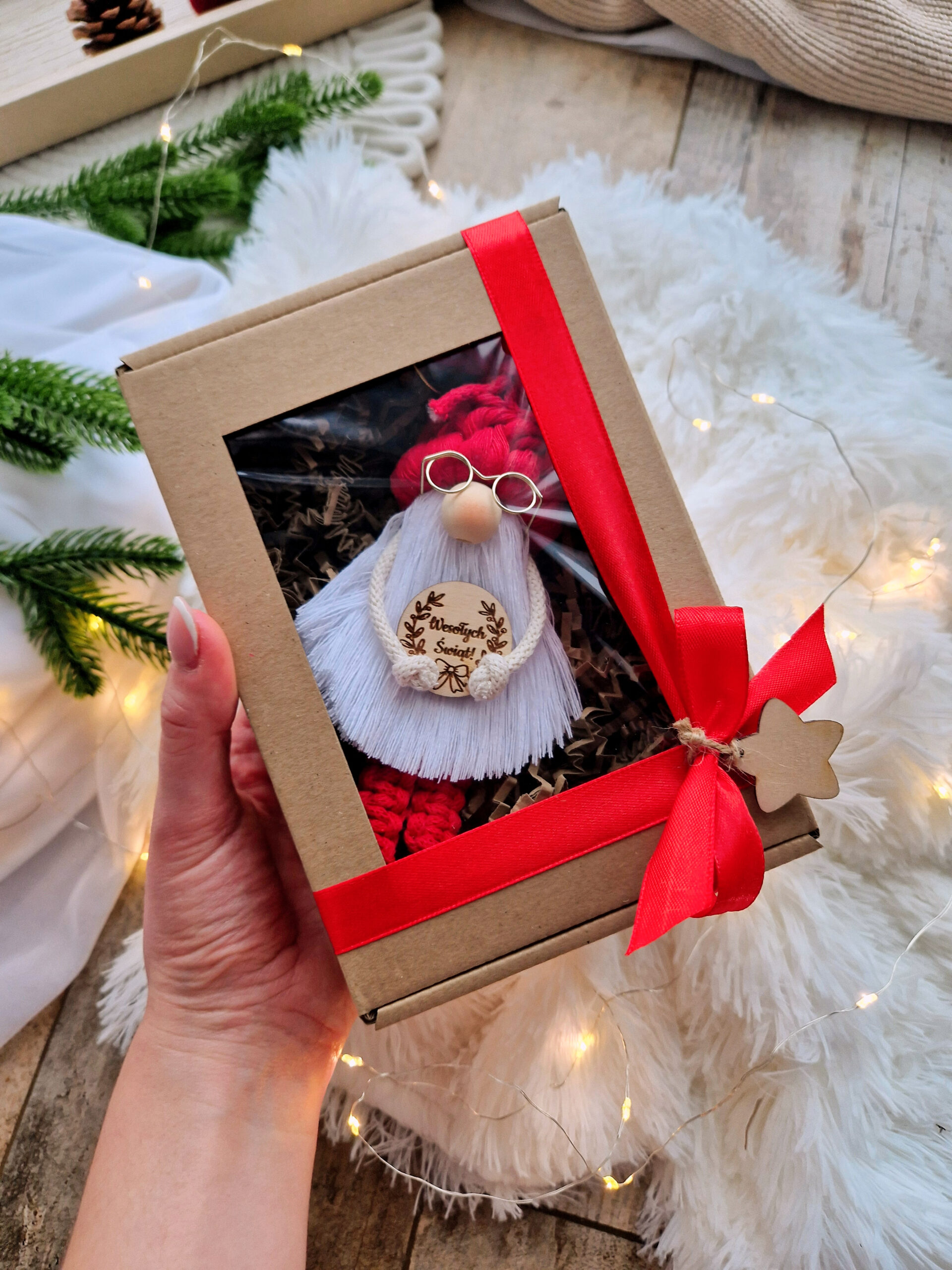 • Pakowanie na prezent – skrzaty zapakowane są w ozdobne pudełko z okienkiem, przewiązane dekoracyjną wstążką.