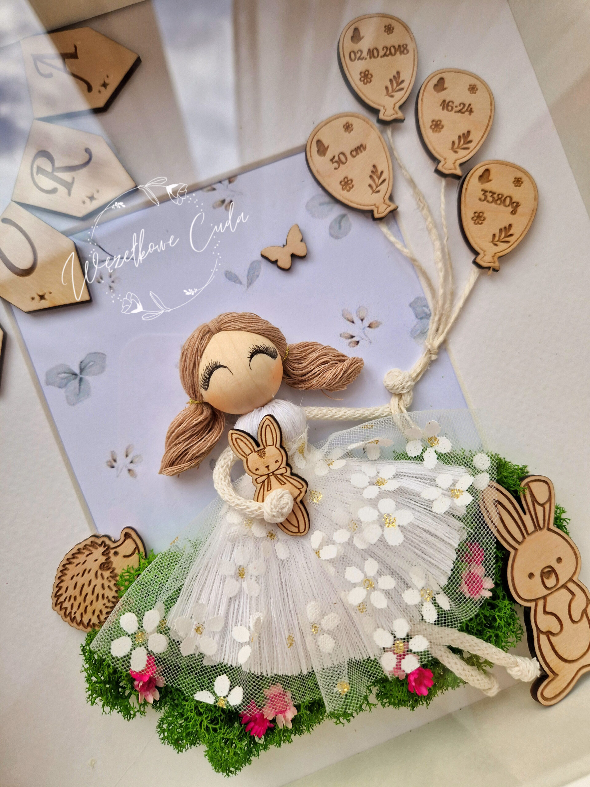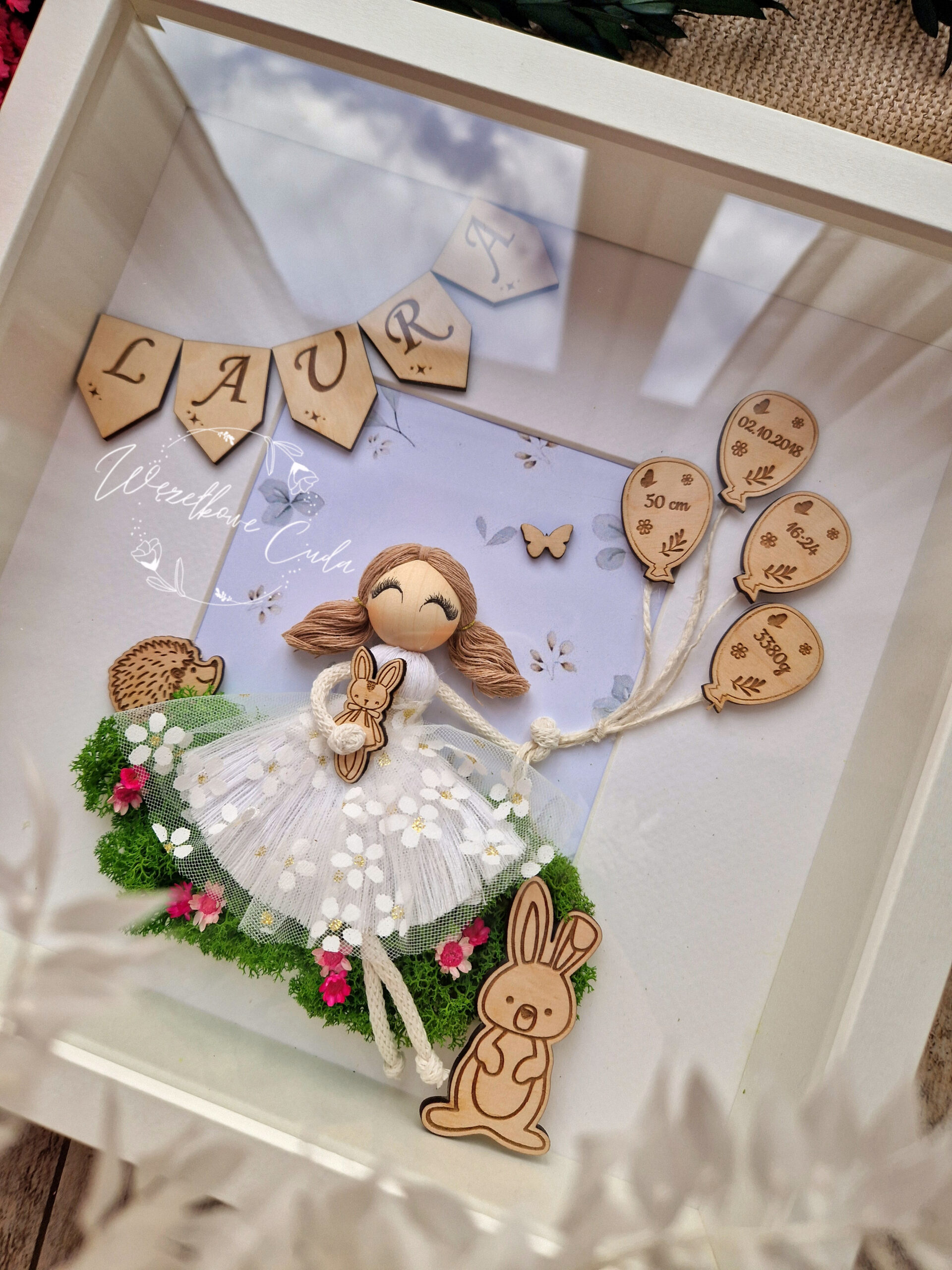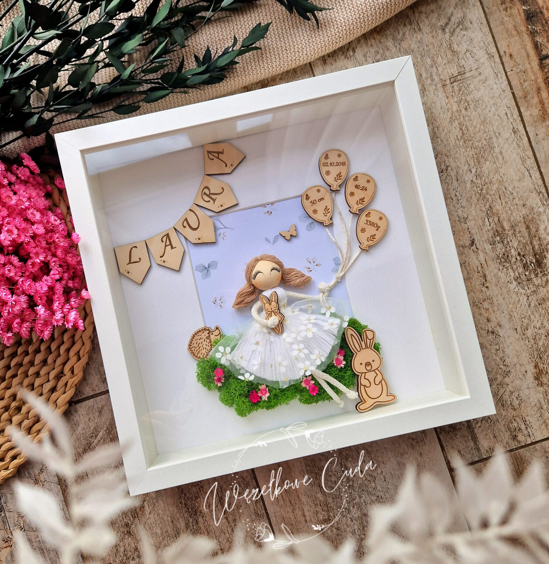 Urocza, ręcznie wykonana ramka 3D to wyjątkowa pamiątka z okazji narodzin dziecka. Idealna jako prezent na chrzest, roczek lub jako dekoracja do dziecięcego pokoiku.
