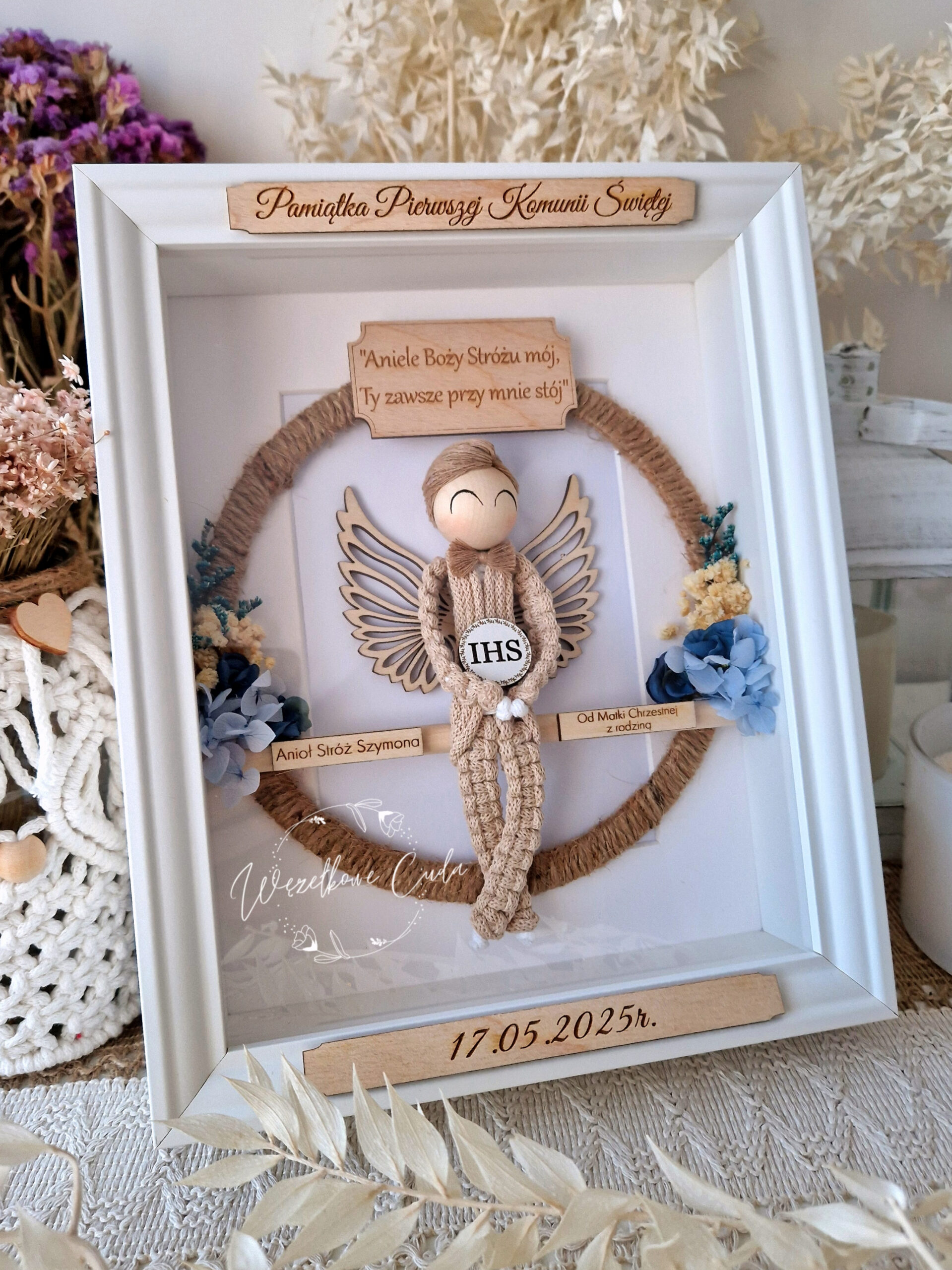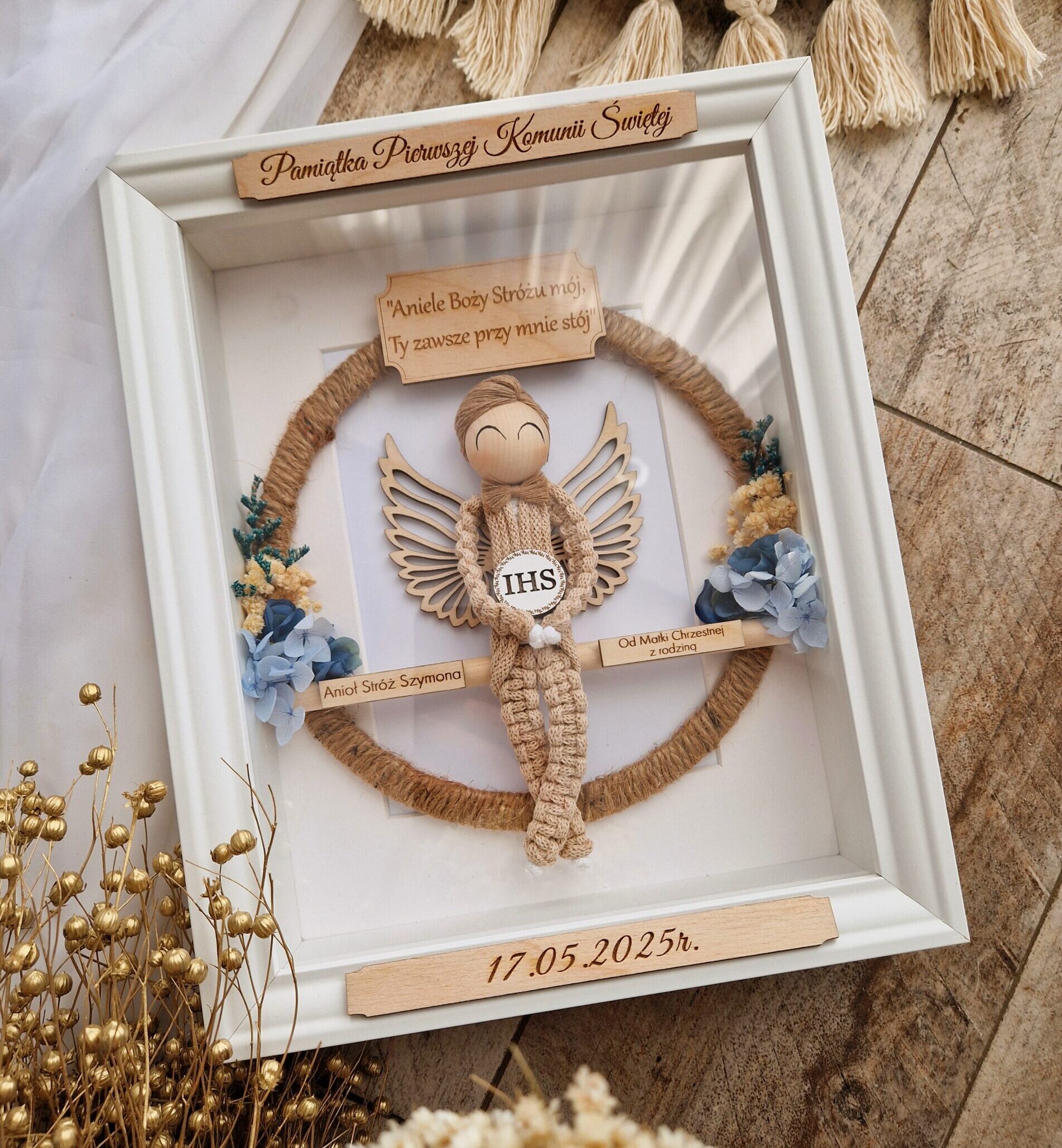 Zatrzymaj najpiękniejsze chwile dzieciństwa w formie wyjątkowej pamiątki – ręcznie wykonanej dekoracji z Aniołem Stróżem, która nie tylko upamiętnia dzień Pierwszej Komunii Świętej, ale także stanie się symbolem duchowej opieki, miłości i bliskości bliskich osób.