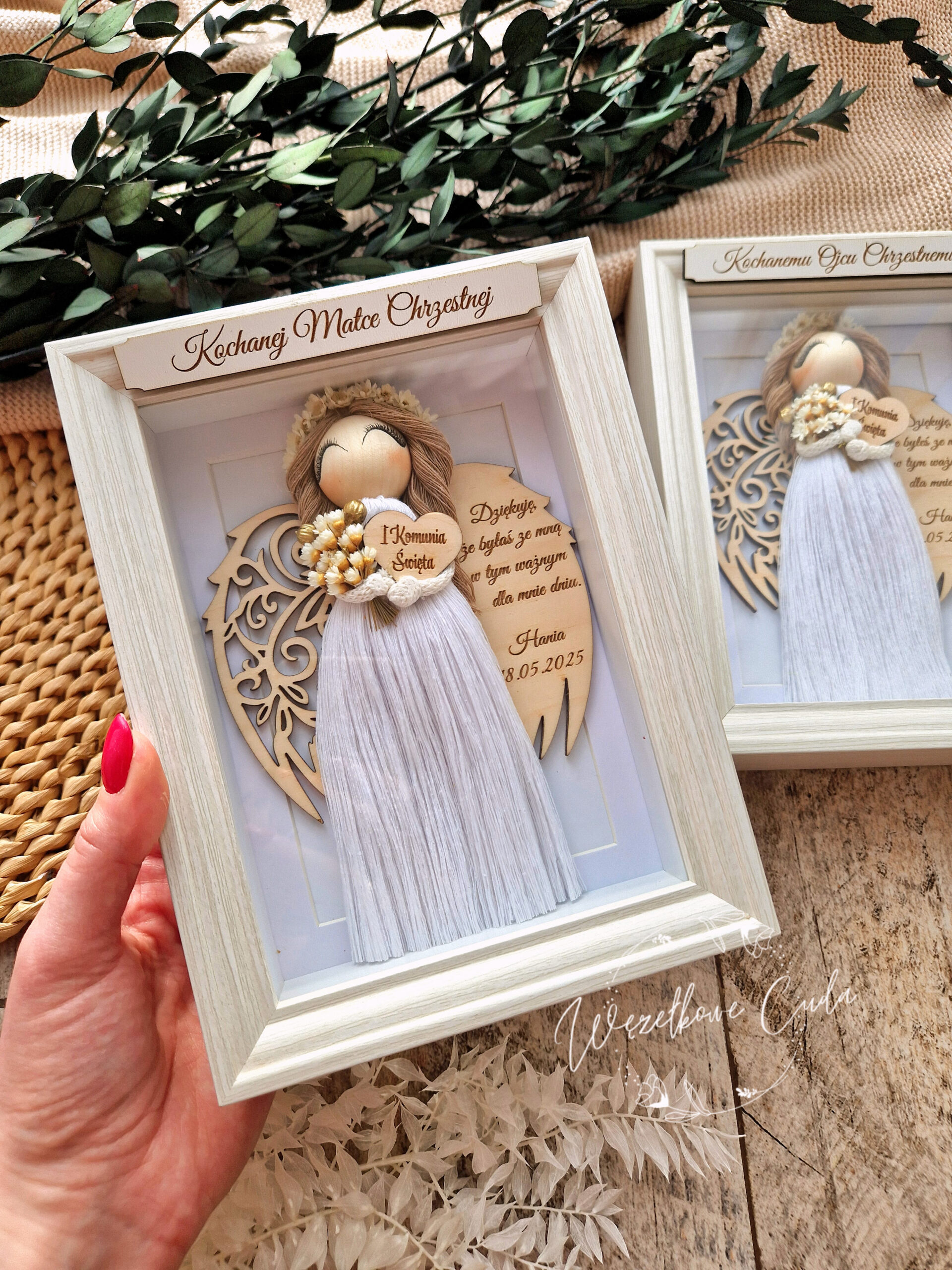 Ta przepiękna, personalizowana ramka z uroczym Aniołem Stróżem to idealny i trwały sposób, by wyrazić wdzięczność Matce lub Ojcu Chrzestnemu za obecność oraz wsparcie w dniu Pierwszej Komunii Świętej. To pamiątka, która wzrusza i pozostaje w sercu na lata.