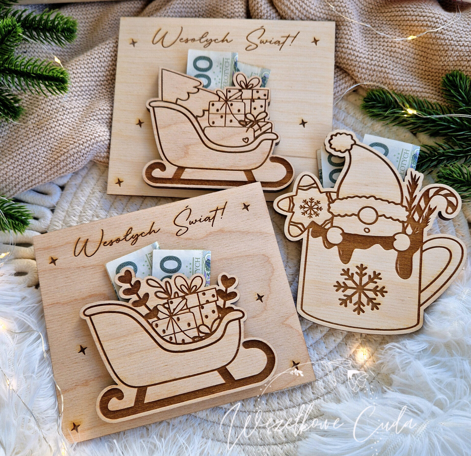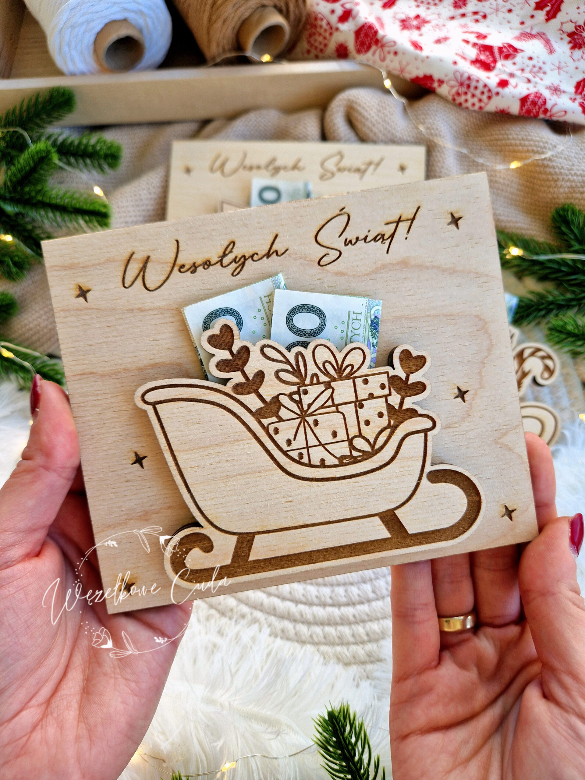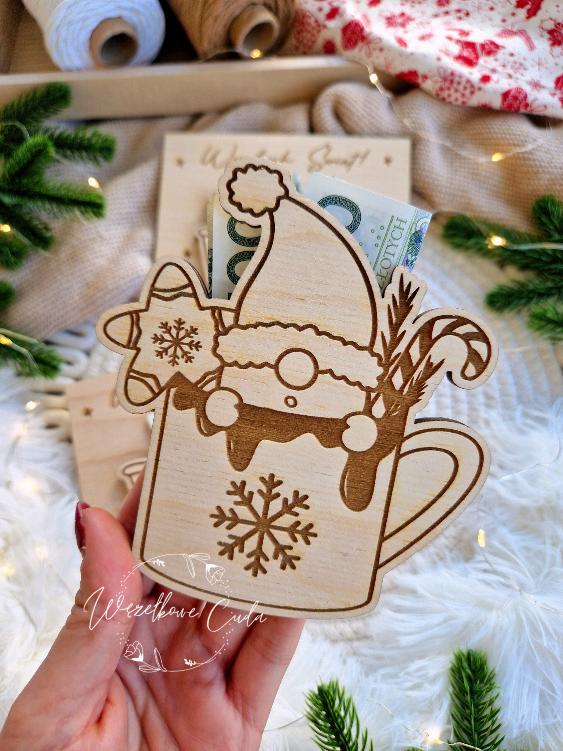 Podaruj bliskim coś wyjątkowego! Nasze drewniane bony świąteczne to piękny i oryginalny sposób na wręczenie pieniędzy lub drobnego upominku. Wykonane z wysokiej jakości sklejki, precyzyjnie grawerowane i pełne świątecznego klimatu, zachwycą każdego obdarowanego.
