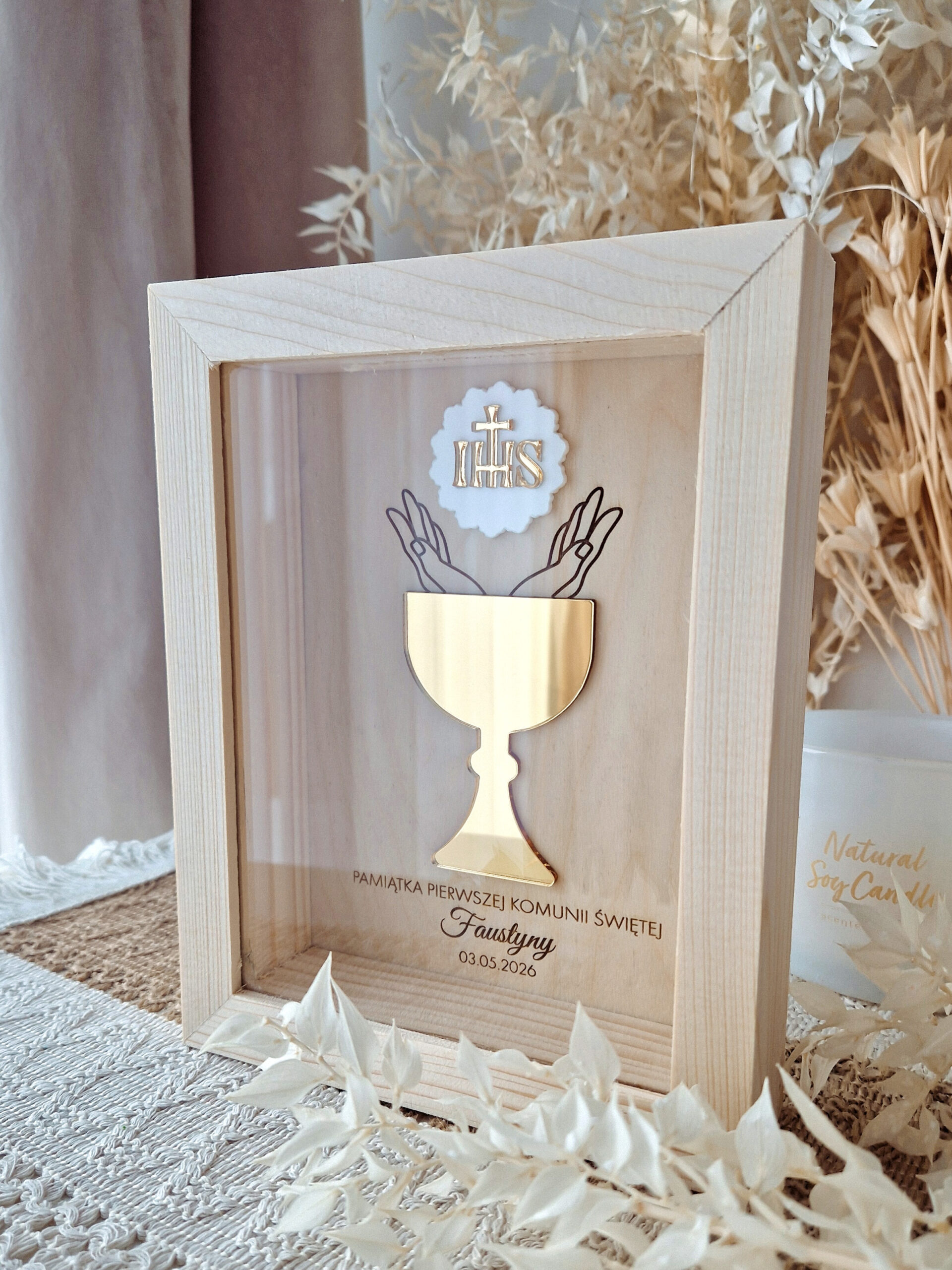 • Trwała pamiątka: Napis “Pamiątka Pierwszej Komunii Świętej” wykonany precyzyjną metodą sprawia, że ramka pozostanie cennym wspomnieniem na lata.